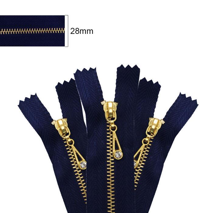 Zíper Metal Cursor com Strass - 28mm - 10 unidades - Marinho 318 - ZMD3